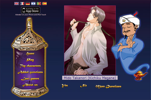 akinator.com(キャラを思い浮かべながら質問に答えるとズバリ当ててくれるアレです。)